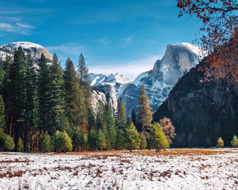 The winter light in Yosemite creates a soft glow across well-known viewpoints. Half Dome and El Capitan take on new shapes as snow outlines the edges of their ridges, and the changing sunlight gives the cliffs subtle color shifts throughout the day. Wildlife continues to move around the valley, leaving visible tracks that tell small stories about their paths. The colder temperatures bring a peaceful rhythm to the park, allowing visitors to enjoy long walks, calm views, and moments of stillness that feel very personal.
