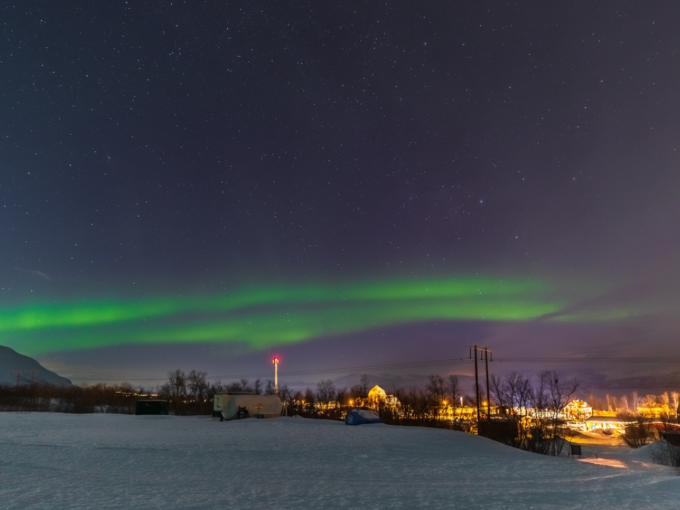 Located in Swedish Lapland, Abisko National Park is renowned for its consistently clear skies, making it a prime spot for Northern Lights enthusiasts. The park is situated near the Abisko Turiststation, a remote location with minimal light pollution. The natural beauty of the park, with its vast snow-covered landscapes and the iconic Torneträsk Lake, adds to the enchantment of the auroras dancing overhead.