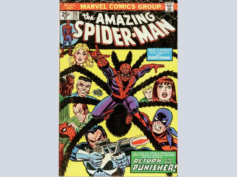 First published in 1974, this issue marks the first appearance of the Punisher, one of the most iconic antiheroes in Marvel’s history. The Punisher was introduced as a sharp contrast to Spider-Man’s usual foes, with his militaristic methods and no-nonsense approach to crime. The issue also introduces the character Jackal, whose story would be further developed in later issues.