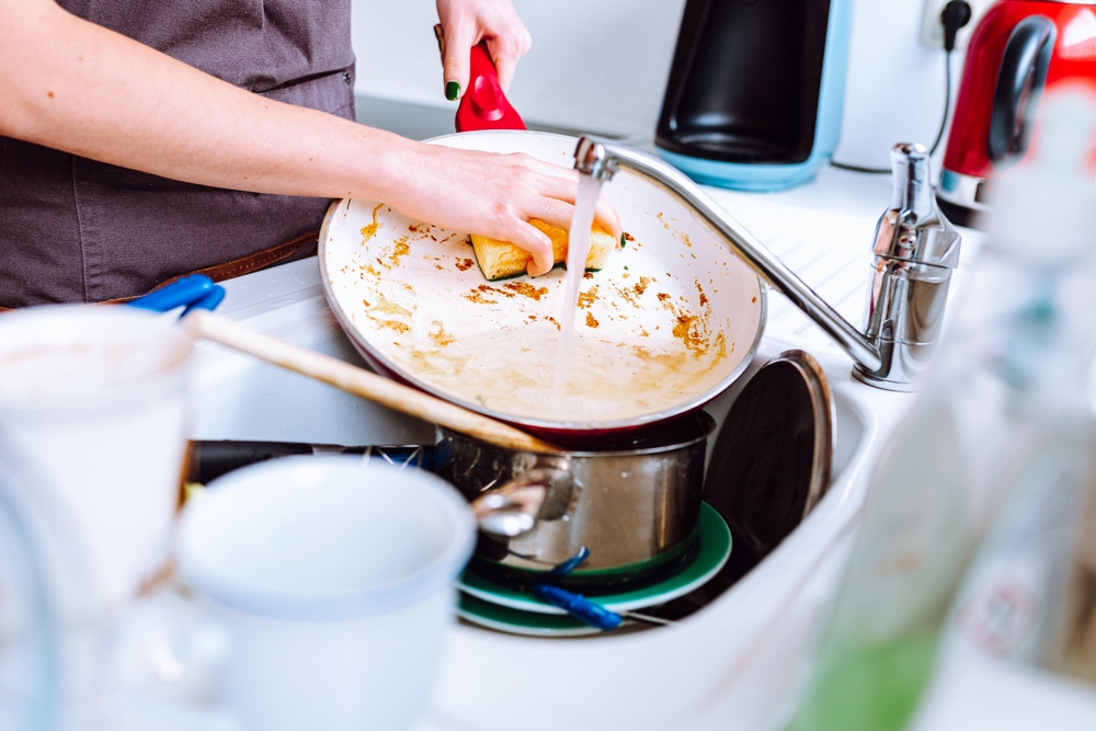 Trying to wash dishes immediately after use without letting them soak can waste more time than it saves. Stubborn food particles may stick to plates and pots, making them harder to clean. Instead, let dishes soak in warm soapy water for a few minutes before scrubbing. This softens the food debris, making it easier to clean without excessive scrubbing.