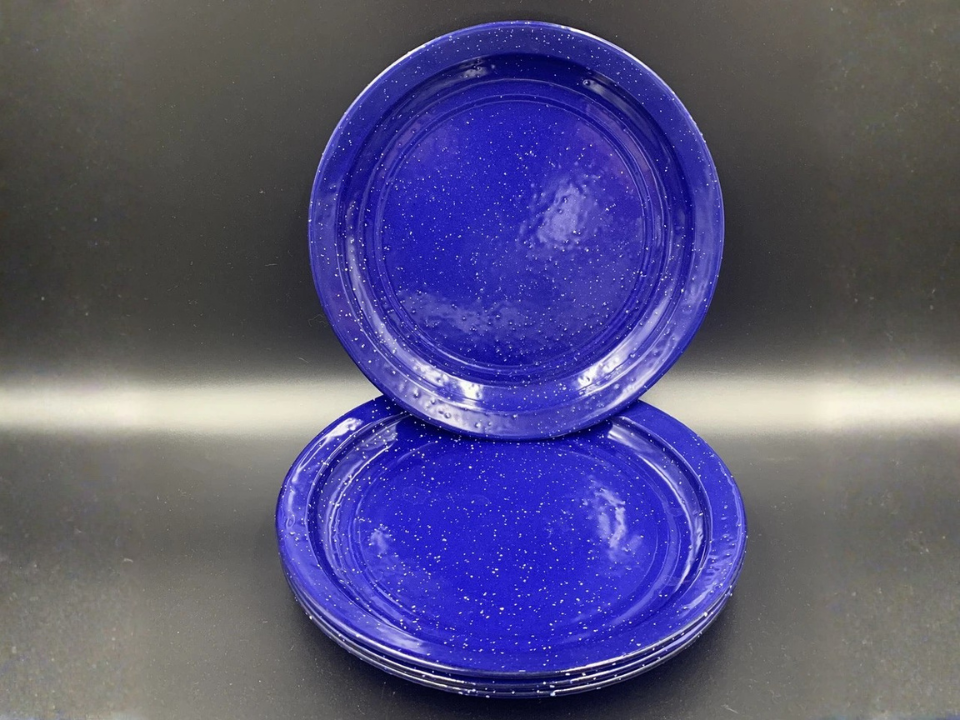 These enamelware plates by Coleman are retro pieces that remind people of outdoor life from past decades. The smooth enamel finish and simple patterns make them easier to clean after a day in the sun. They are made from steel coated with enamel and resist stains when handled gently. A set in good shape can be worth about $40 to $90 today.