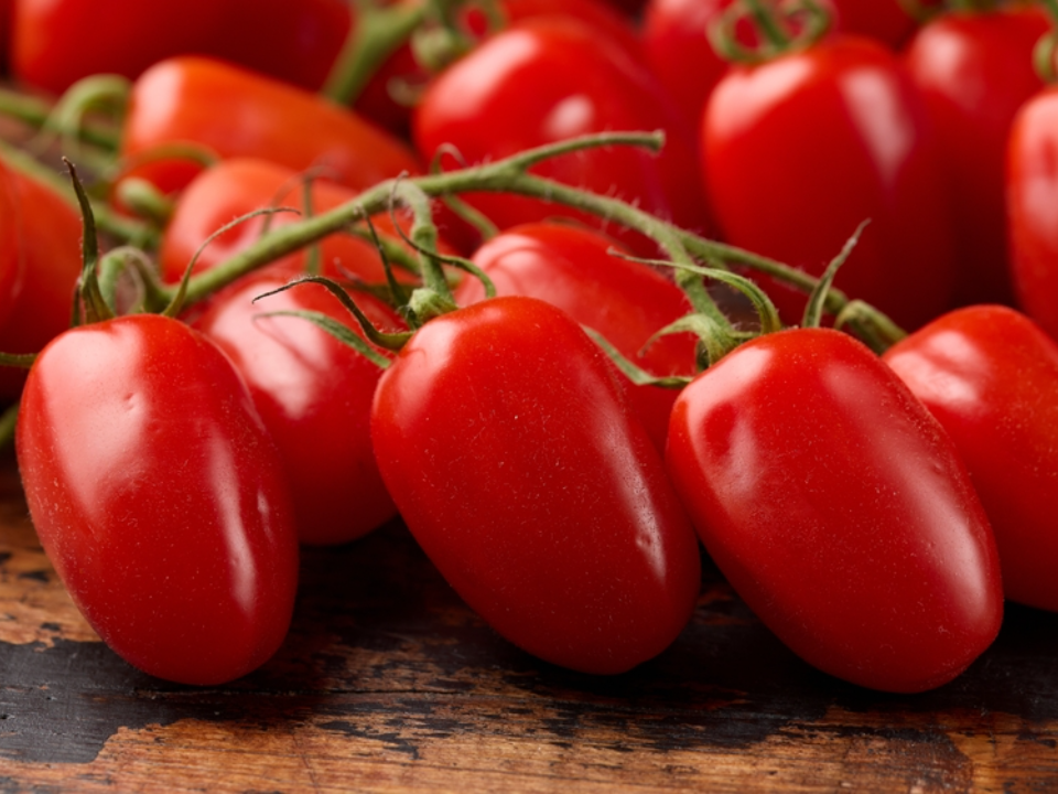 San Marzano tomatoes are an Italian heirloom variety that is well-known for its rich, deep flavor and slightly tangy profile. It is often used in Italian cooking, especially in sauces and pastes, due to its lower water content and fewer seeds compared to other types. The fruit has a bright red color and is elongated, making it easy to peel and cook down into a thick, flavorful sauce.