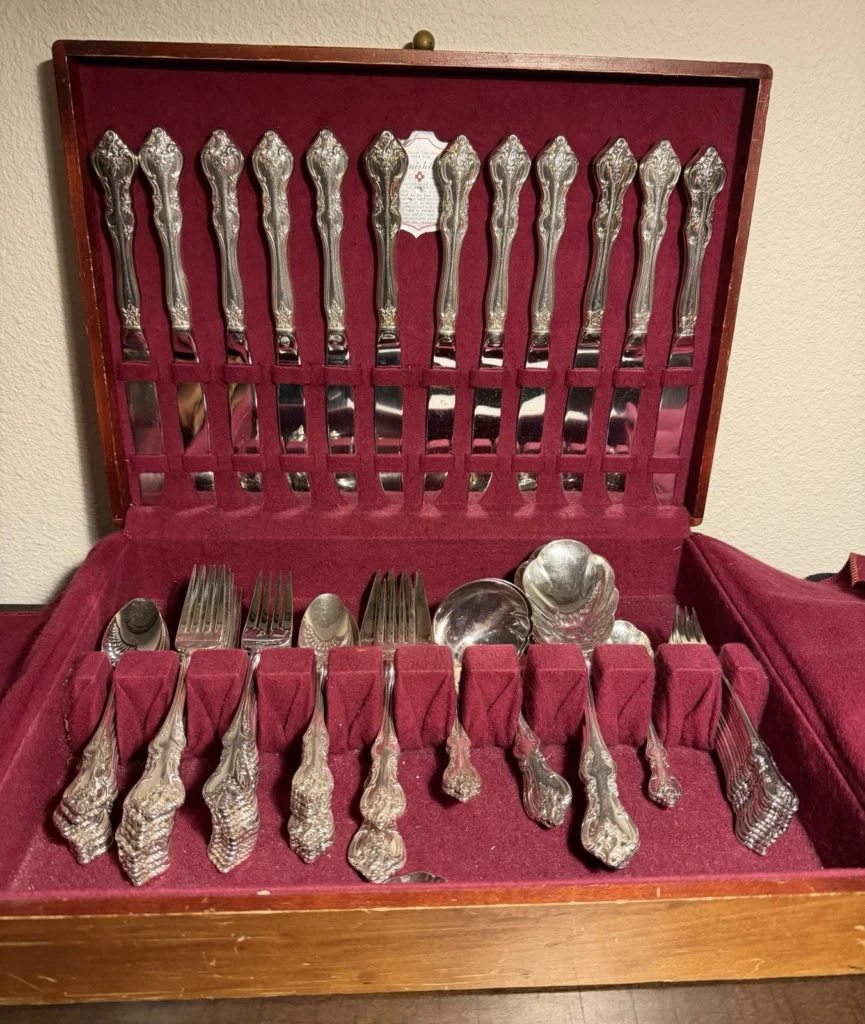 Silverplate flatware sets are full of hallmark clues because each utensil often has a stamp on the back of the handle. Check a few different pieces in the set, since forks and spoons sometimes carry clearer marks than knives. Look for maker names, pattern names, and plating designations, and watch for mismatched pieces that slipped into the chest over time. The case itself can also help date the set, especially if it has a retailer label or a printed pattern card.