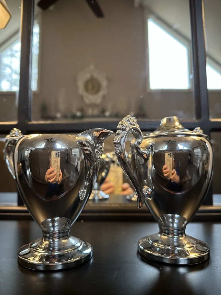 Sugar and creamer sets are classic thrift store finds, and they are often stamped on the bottom in a way that is easy to read. Check both pieces because sometimes the creamer has the clearer mark, especially if the sugar bowl saw more polishing. These sets can be surprisingly varied, from fancy scroll designs to simple shapes, so the maker stamp helps you figure out what you are looking at. If there is a matching tray, check it too, because trays sometimes show a different stamp or a pattern number.