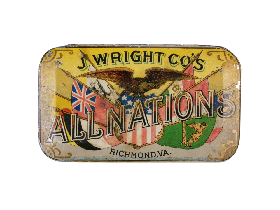 The All Nations tobacco tin carries a name that suggests broad appeal, and many examples show lively graphics and strong typography. Though the brand is not as famous as some giants of the trade, the tin’s look and age give it solid collector interest.