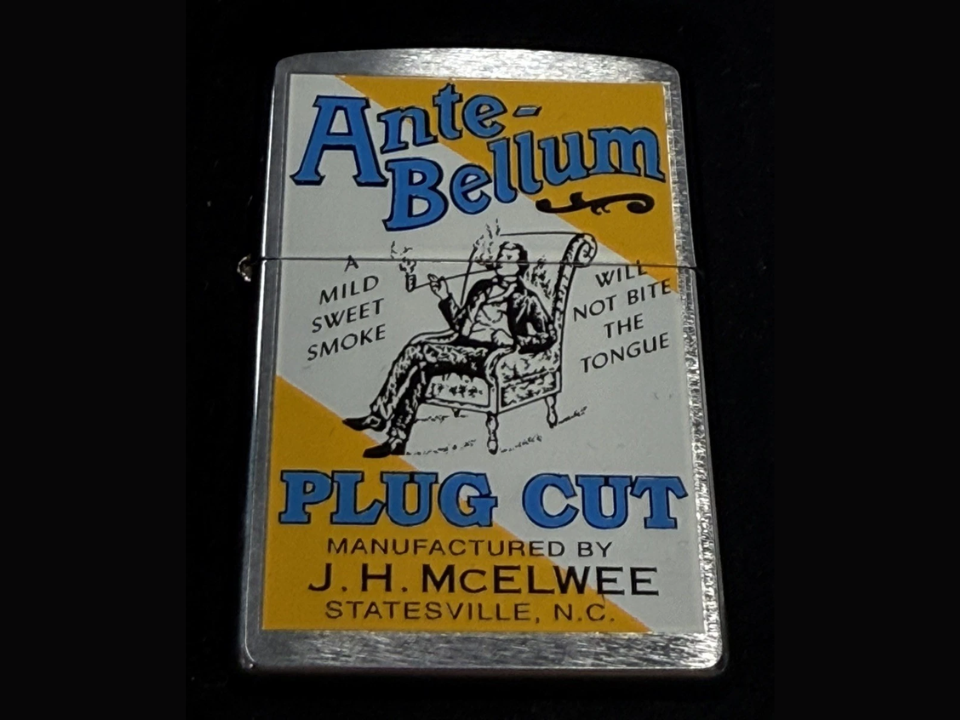 The Ante Bellum Plug Cut tin from J H McElwee Co in Statesville, North Carolina, is one of the star pieces in old tobacco advertising. Its vertical format, rich colors, and early lithography give it a presence that is hard to match.