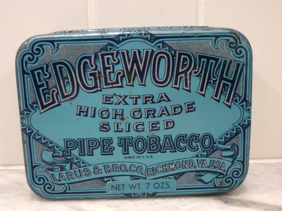 Edgeworth tins often stand out with their blue backgrounds and distinctive lettering that signal a higher quality pipe mixture. Many tins were made in rectangular or pocket sizes, and some still carry traces of original tax stamps, which add another layer of interest.