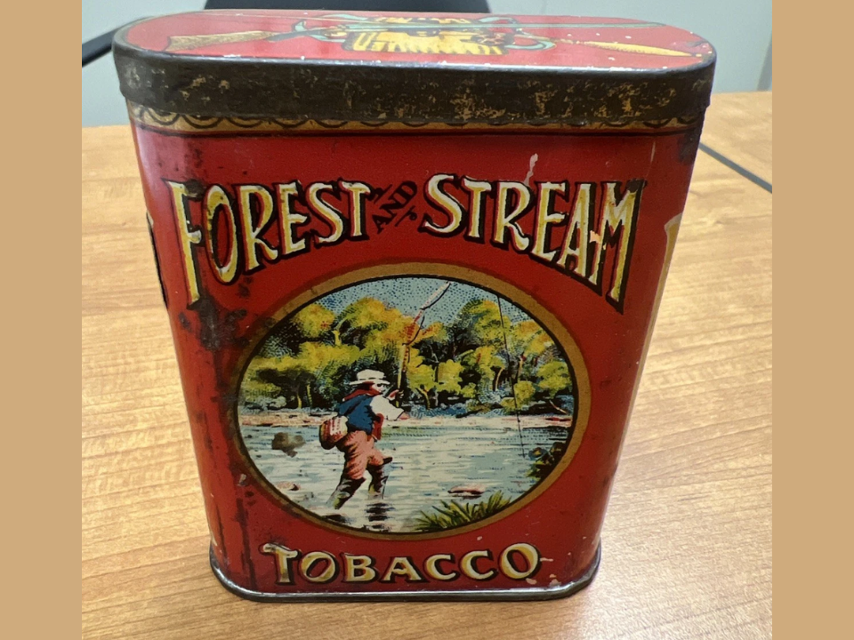 The Forest and Stream pocket tobacco tin combines outdoor imagery with smoking history, often showing scenes linked to fishing or country life. It is a Canadian brand, so examples in other regions can feel a bit harder to track down, especially in strong condition.