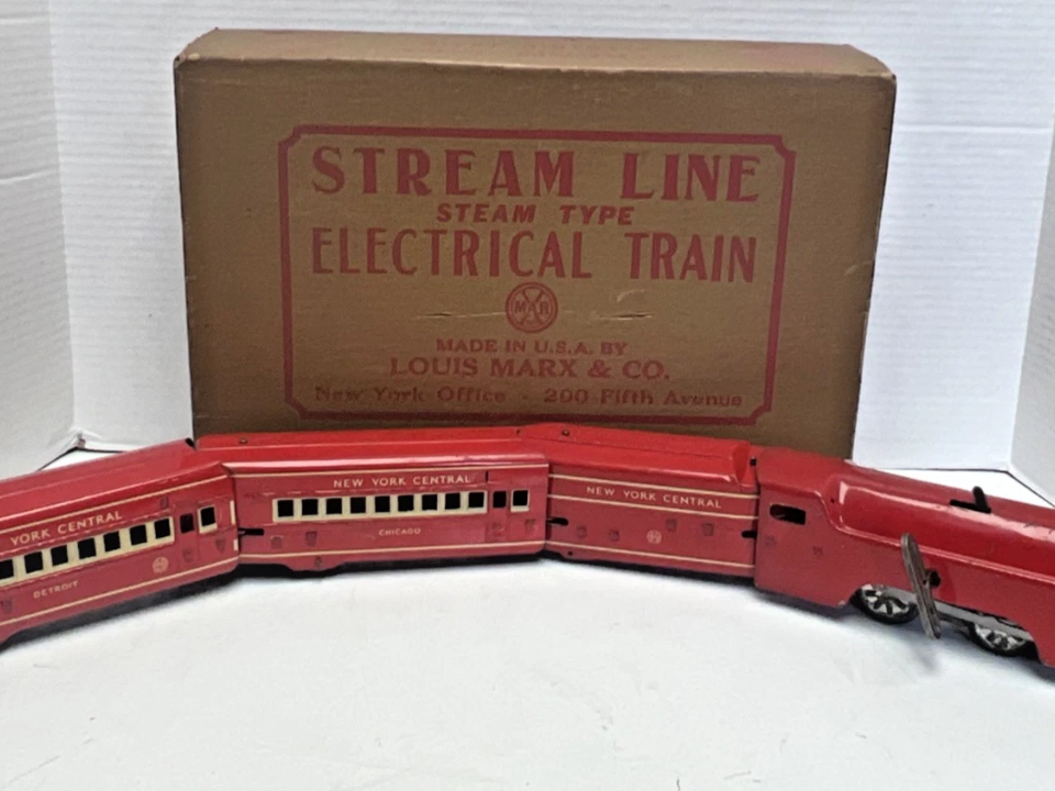 Marx tin trains remain popular during the holidays because they carry a classic toy quality that appeals to both adults and children. The wind up design creates a sense of wonder as the train rolls with gentle clicking sounds across simple tin track pieces. The artwork on the sides often shows bright colors and charming patterns that shine under holiday lights. Many families enjoy using these tin sets in displays that mimic earlier decades when simple toys were common.
