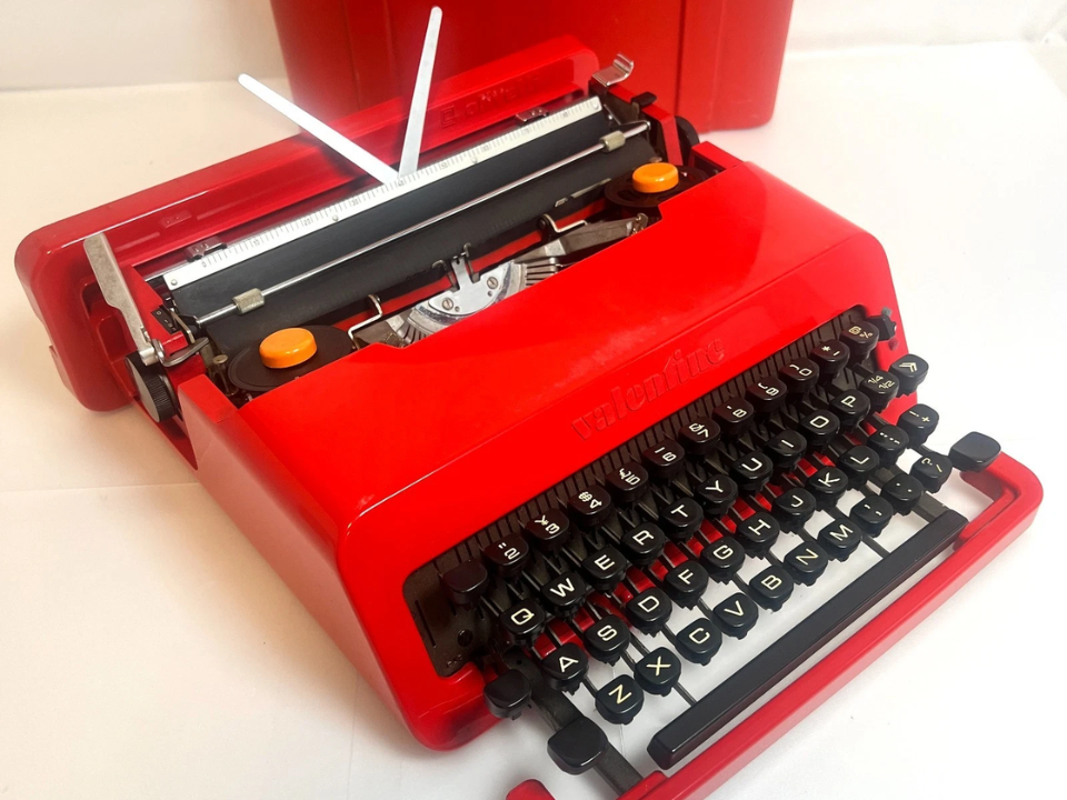 The Olivetti Valentine is a design icon that stands out immediately thanks to its bright red plastic body and matching carry case. Introduced in 1969 and designed by Ettore Sottsass and Perry King for Olivetti, it was meant as a fun portable machine that could be used anywhere, from a student dorm to a park bench. Functionally it is not the quietest or most refined writer, yet its looks and cultural presence keep demand strong among typewriter fans and design collectors.