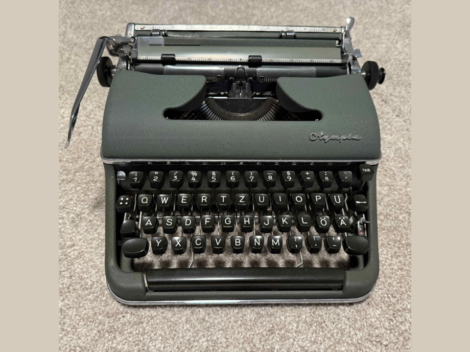 The Olympia SM9 is a later portable that shows how refined manual typewriters became by the 1960s. Built by Olympia as a successor to the earlier SM series, it kept the solid metal frame and crisp type action while adding small updates such as improved keytops and paper guides. Collectors praise its reliability and the clean typeface options that make pages look neat for long manuscripts or correspondence.