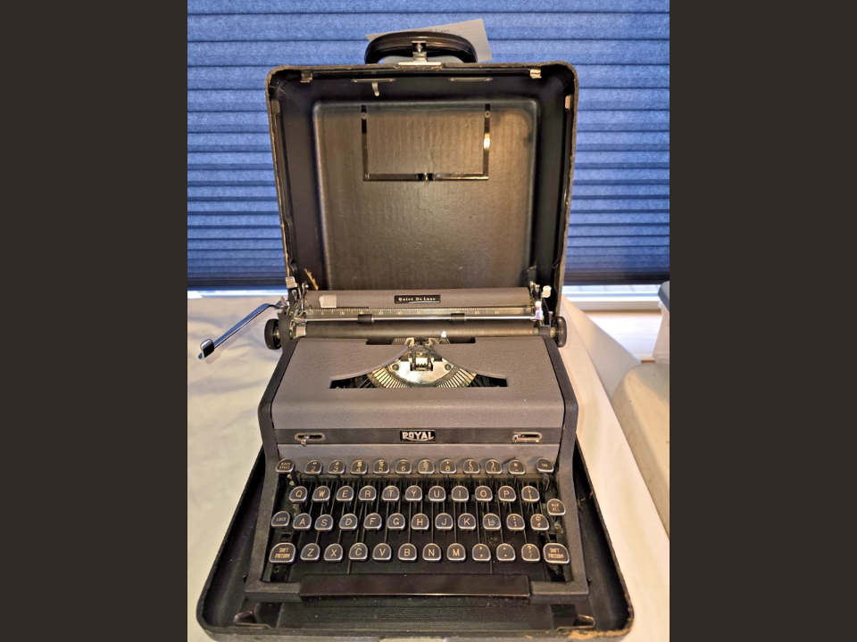The Royal Quiet De Luxe is a portable model from Royal Typewriter Company that many collectors chase for both its celebrity connections and its workhorse build. It gained fame in part because author Ernest Hemingway is strongly associated with Royal portables, and the Quiet De Luxe line picked up that aura for later generations. The machine itself has a compact body with rounded corners, comfortable keys, and features like a paper support and margin release that make regular writing feel smoother.