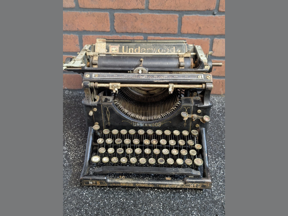 The Underwood Standard No. 5 is one of the classic office machines that collector’s picture when someone mentions an old typewriter. Built by the Underwood Typewriter Company, it introduced the front strike design that let typists see their words as they appeared on the page, which quickly became the industry standard in the early twentieth century. You can recognize it by the tall open frame, semicircle of type bars, and the big Underwood logo across the paper table, all of which create strong visual presence on a shelf or writing table.