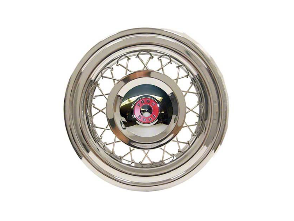 The wheels from a 1955 Ford Thunderbird have a classic look that reflects the style of mid century American sports cars. These wheels originally came with chrome trim rings and center caps that add to their appeal. Many wheels lost these accessories over the years which makes complete sets uncommon. Enthusiasts prize sets that have original finish and clean surfaces.
