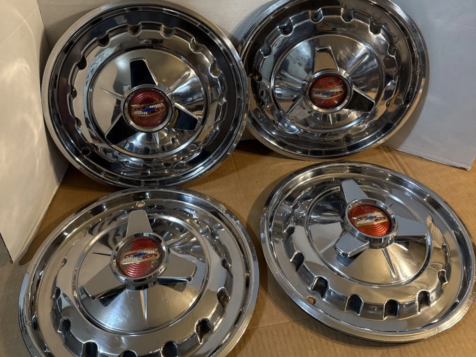 A set in solid cosmetic shape can bring around $3,000 to $4,500. Enthusiasts often hunt pieces that retain original stamping and minimal pitting. When the chrome finish is intact the pieces gleam in the sun at car events. Collectors place high value on matching pairs from the same car. Sellers who include original dust caps color coded to the car find more interest. These hubcaps help a Bel Air restoration stand out in any gathering.