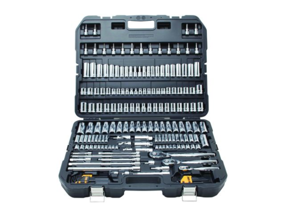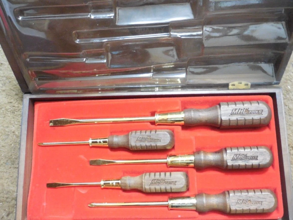 Made in 1975, this Dewalt set had a strong molded case and hex wrenches that were respected by professionals. It is hard to find now because Dewalt reissued many designs, and older sets were replaced. Value for a full early kit reaches $300 to $550 in markets where collectors gather. Original handle grips and stamped metal ratchets make this set stand out. Some include the first generation of sockets that are no longer produced.