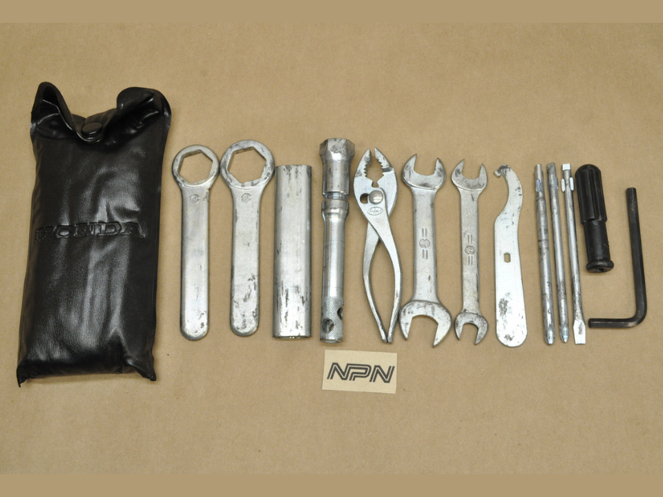 This set was provided with Honda vehicles in 1977 and included branded pouch and OEM wrenches. It is sought after since this version was replaced with simpler kits in later years. Value for a clean set ranges from $200 to $400 depending on condition. The quality of Honda stamped tools shows care in original design. Some sets include original user guides which adds interest for car fans.