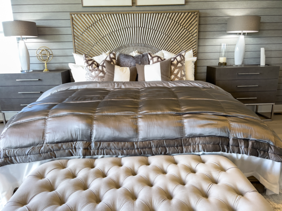 Switch to a lighter, more breathable duvet or comforter to create a cleaner, more modern appearance. These alternatives offer comfort without the excessive volume and can keep the room feeling more airy and open.