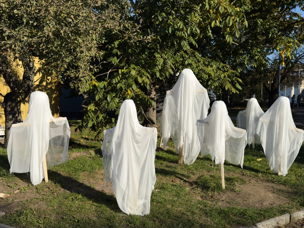 For a more dramatic look, add some eerie, glowing eyes behind the fabric. Simply use small LED lights or battery-operated lanterns to illuminate the ghostly fabric and create the illusion of wandering spirits. These ghostly figures can be placed near walkways or along your porch, guiding trick-or-treaters to the door. With a little creativity, this simple hack will turn your front yard into a haunted graveyard.
