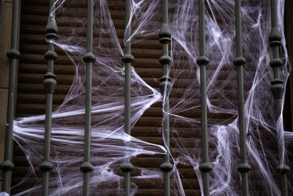 You can also tie in elements like spooky lights or hanging ghosts with the webs to enhance the effect. This Halloween decoration works perfectly with other fall elements, like pumpkins or hay bales, while making the space feel distinctly spooky. The key is balancing the web-like texture with existing fall decor, turning a simple porch railing into a haunted gathering space.