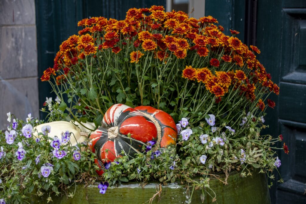 7 Outdoor Planter Ideas With Pumpkins and Mums