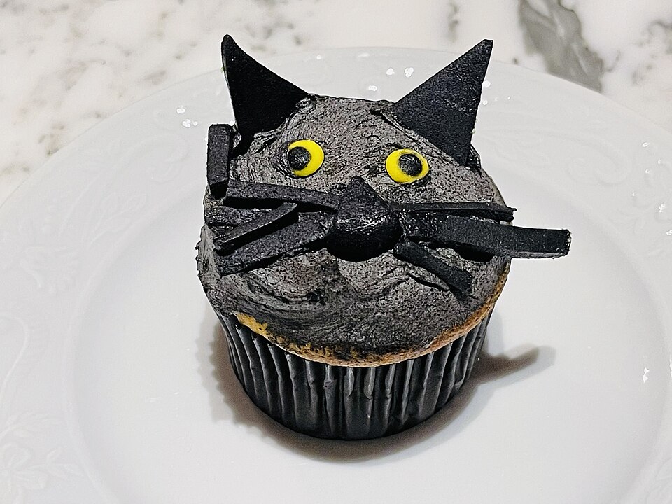 Black cat cupcakes are a fun, creative way to celebrate Halloween. Chocolate cupcakes topped with black frosting, candy eyes, and orange ears make them look like cute black cats that will delight guests.