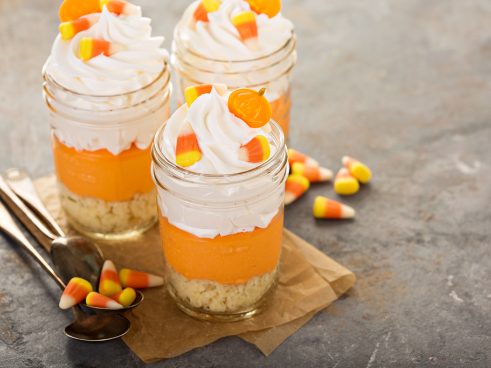Start by beating 8 oz of cream cheese with 1/4 cup powdered sugar until smooth. In a separate bowl, whip 1 cup heavy cream with 1 tablespoon vanilla extract until stiff peaks form. Layer the cream cheese mixture, whipped cream, and candy corn in small cups. Refrigerate for 1-2 hours before serving. The layers of color and texture will make this a favorite on your dessert table.