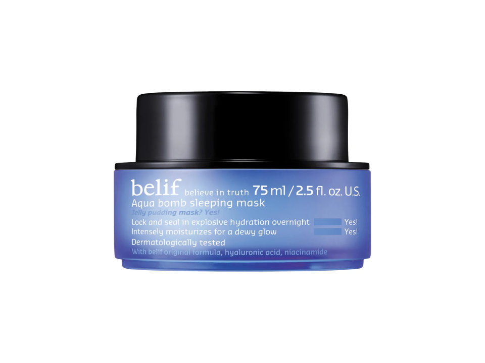 Belif’s Aqua Bomb Sleeping Mask provides an intense burst of hydration for dry, tired skin. It is formulated with a blend of plant extracts, including lady’s mantle, which helps the skin retain moisture and promote a healthy glow. This lightweight, gel-based mask absorbs easily into the skin, leaving no greasy residue.