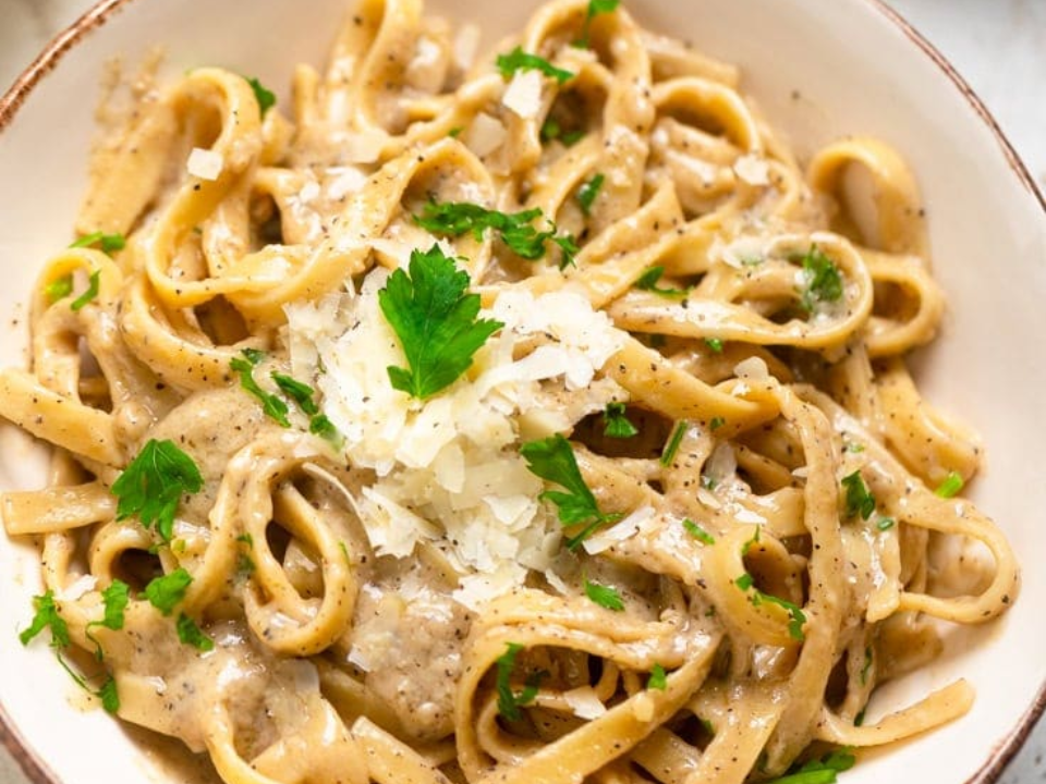 To prepare this dish, you will need 8 ounces of fettuccine, 2 tablespoons of butter, 3 cloves of garlic (minced), 1 cup of heavy cream, 1 cup of grated parmesan cheese, and salt and pepper to taste. Cook the fettuccine according to package directions. In a pan, melt the butter and sauté the garlic until fragrant, then add the cream. Stir in the parmesan cheese and mix until smooth, then toss in the pasta. Serve warm for a delicious, creamy meal.