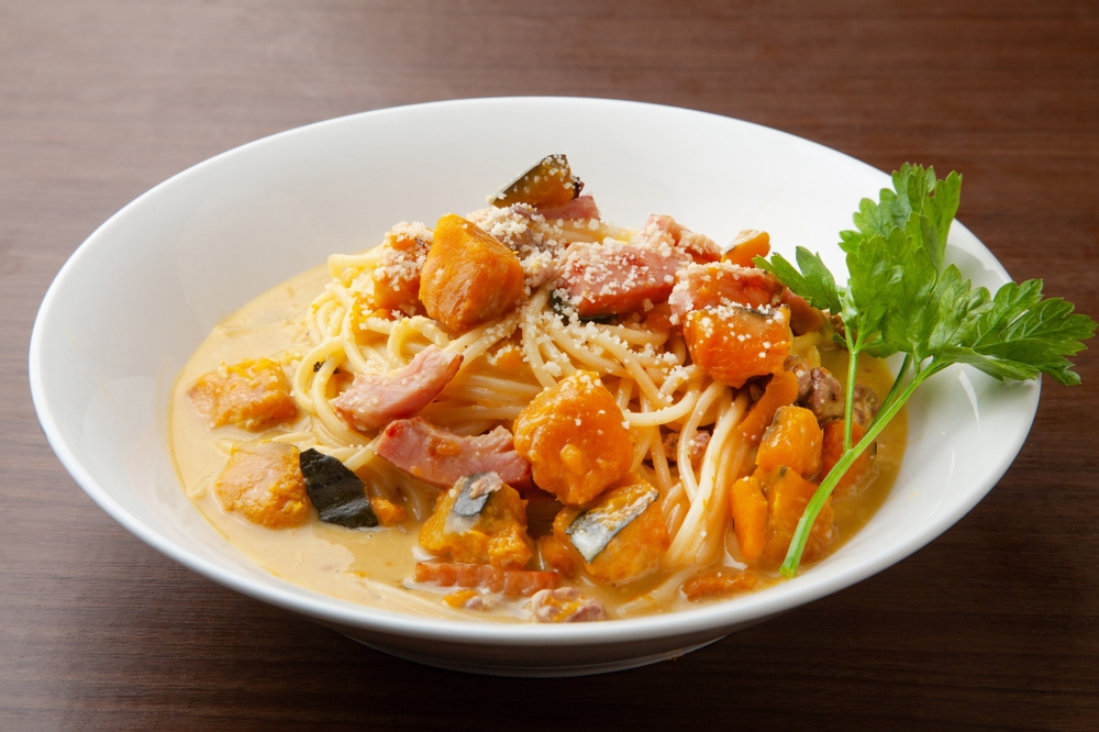 In a pan, melt butter and sauté garlic until softened, then add the pumpkin puree, cream, and spices. Stir in the Parmesan and let the sauce simmer until it thickens. Toss the cooked pasta in the sauce, making sure it is fully coated. Serve with a sprinkle of extra Parmesan and a dash of freshly ground pepper.