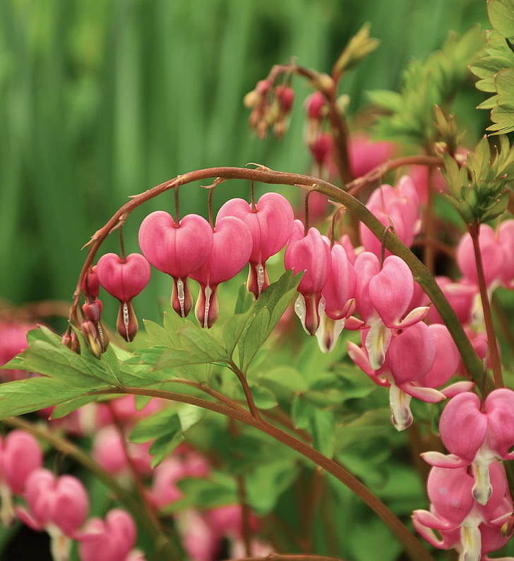 Old-fashioned bleeding heart is a classic spring perennial with arching stems and heart-shaped flowers that hang in rows. The blooms usually show in pink and white, and they have a soft, old garden look that a lot of people love. As the weather warms, the plant fills out into a graceful clump that looks full and lush in shady beds. It is one of those plants that makes a spring garden feel established and calm.