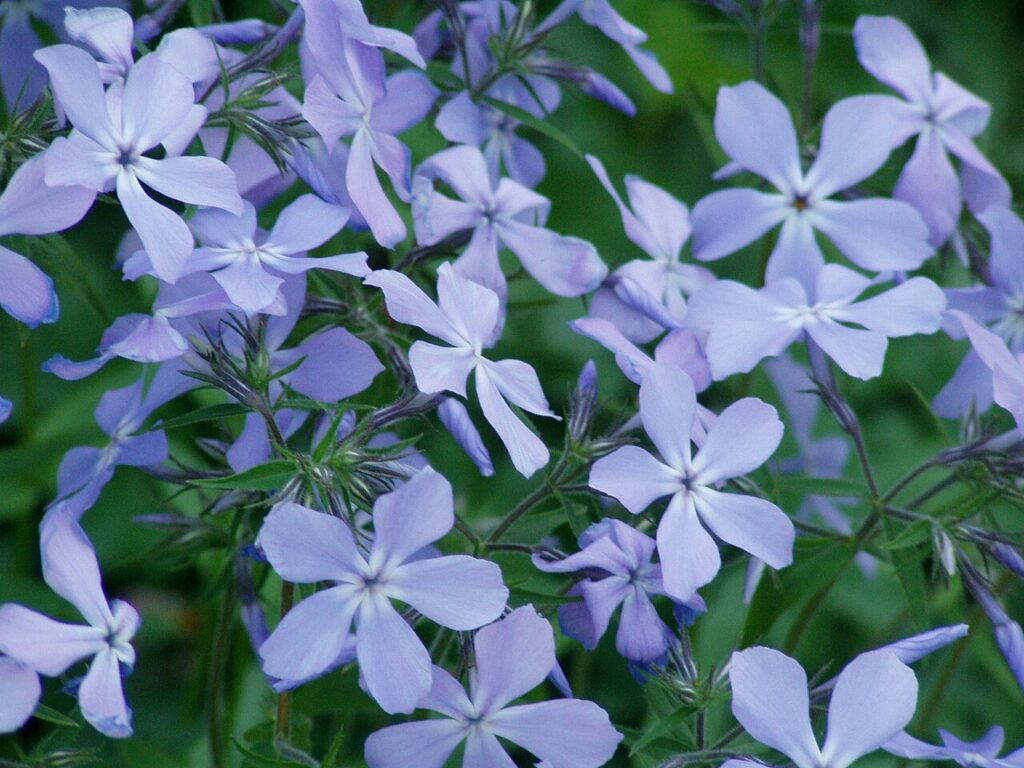 Woodland phlox has loose clusters of fragrant flowers that bring soft color to shady or lightly shaded spots in spring. The blooms are usually blue, lavender, or white, and they have a relaxed look compared with tighter flower clusters on some other plants. In early spring, it starts filling in just as the garden begins to wake up. It can spread gently over time, which helps create a natural look in woodland-style beds.