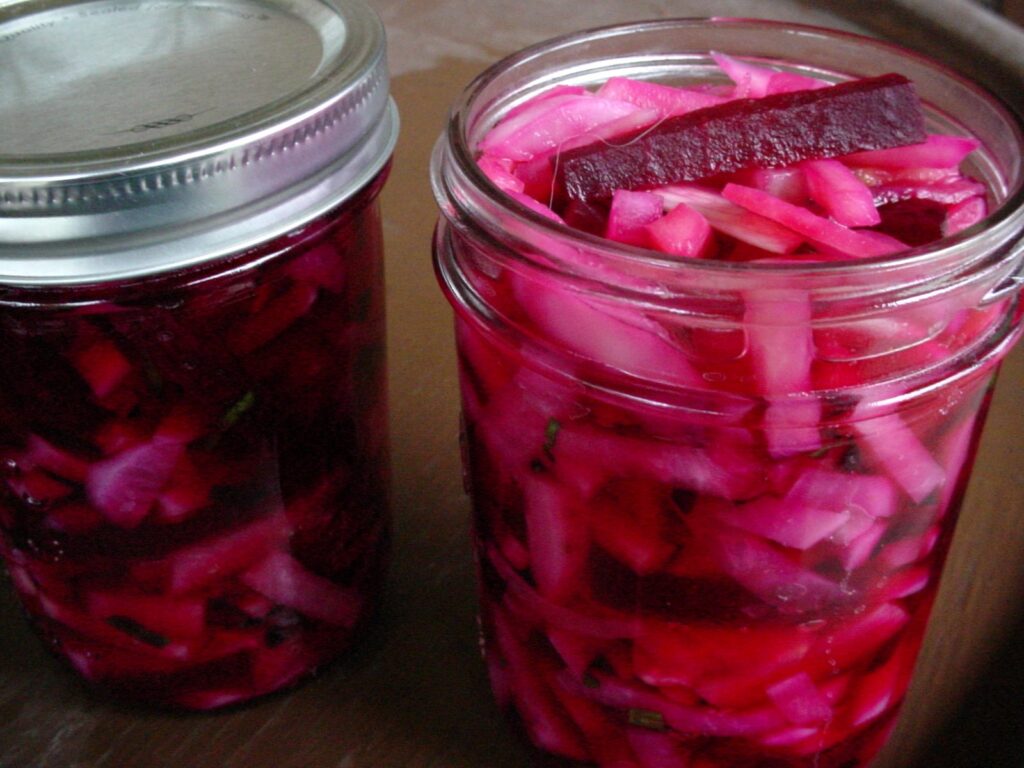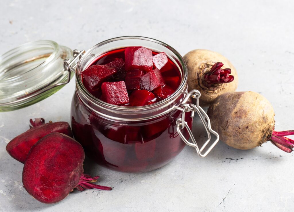Pickled beets hold their deep color while taking on a sweet and tangy flavor. Their earthiness blends well with cloves and allspice, making them a staple in fall and winter meals. They can be served cold as a side or added to salads.