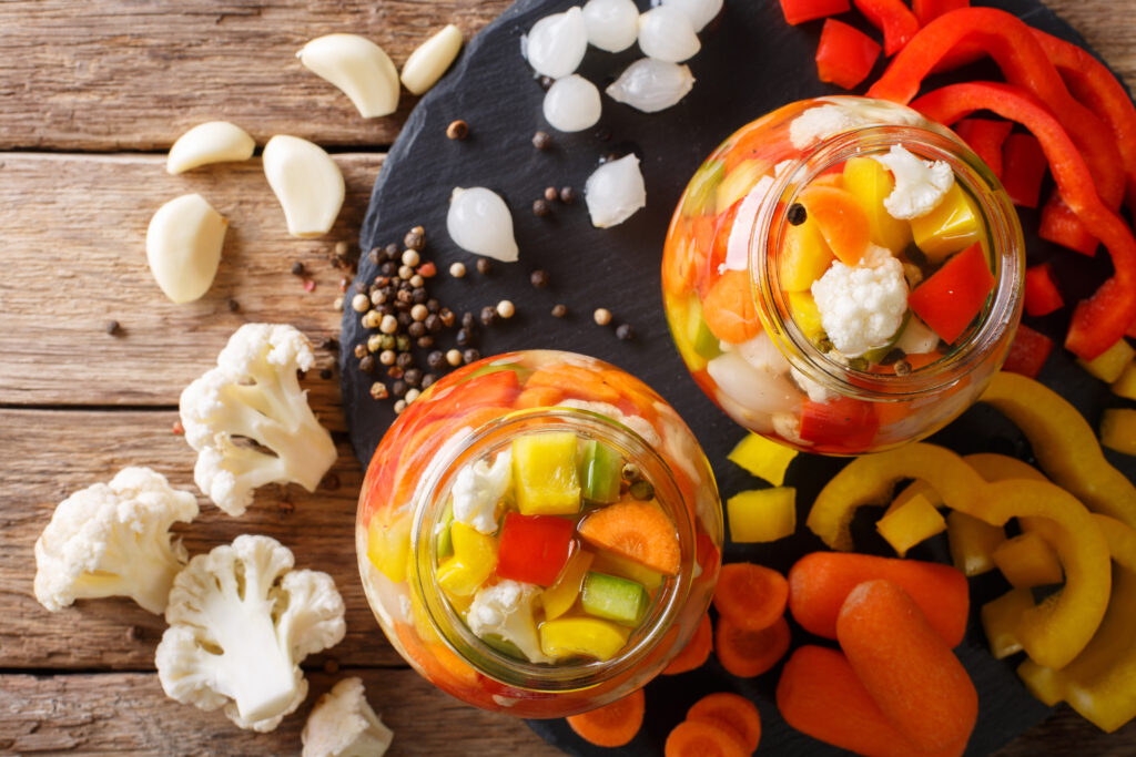 Giardiniera is a colorful mix of vegetables in a tangy brine. Carrots, celery, cauliflower, and peppers combine for a jar full of texture and flavor. This Italian-style pickle is often served with sandwiches or salads.