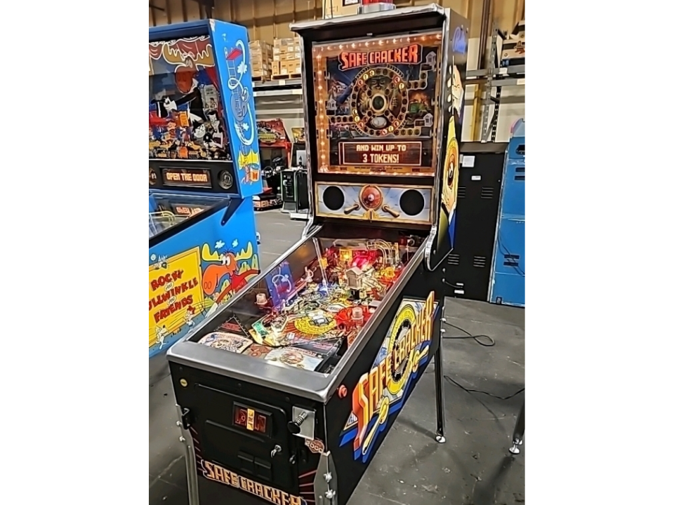 Safe Cracker arrived in 1996 and broke convention with a shorter cabinet and timed play instead of standard ball counts. The circular central layout sends the ball spiraling around a board game style path as you try to crack a bank. A backbox feature even spits real tokens when you win certain goals, which gives it a playful arcade feel. With only about 1,148 units produced and strong collector interest, prices often land near $9,000 to $10,500.
