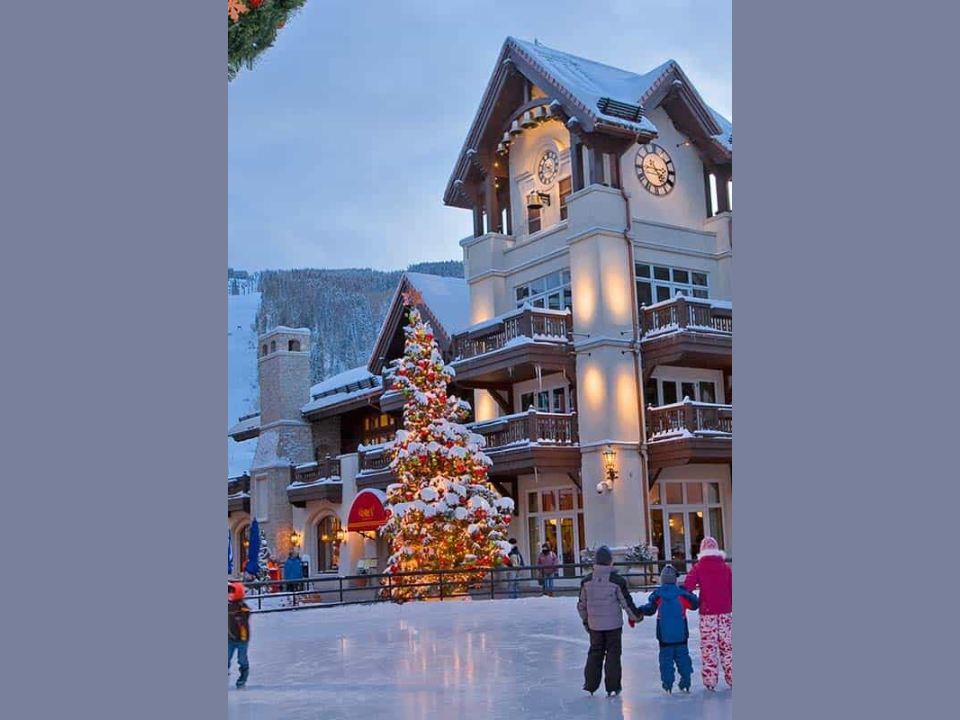 Vail, a well-known ski resort town, takes full advantage of its winter surroundings to create a festive holiday atmosphere. During December, the streets of Vail are lined with twinkling lights, and the mountain resort is aglow with decorations that enhance the town’s picturesque charm. Snow-covered rooftops and towering pine trees add to the winter wonderland feel, making Vail an ideal destination for holiday visitors.