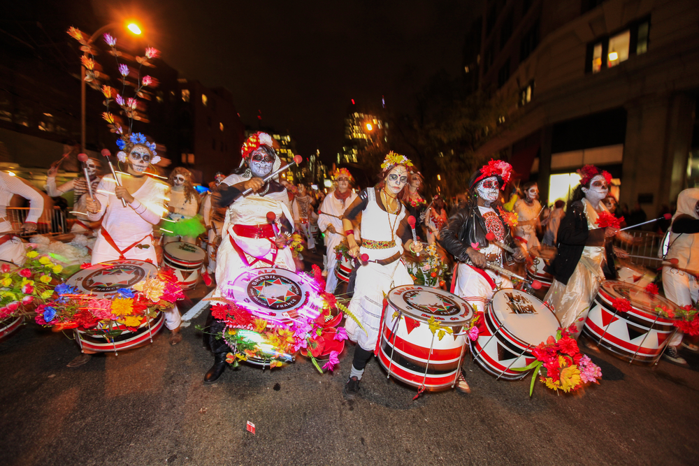 New York City celebrates Day of the Dead with a mix of traditional ceremonies and modern art. The Bronx’s “Day of the Dead Parade” is one of the largest, featuring a colorful procession through the streets. Participants dress in costumes, carry giant puppets, and play traditional music, creating a festive and welcoming atmosphere.