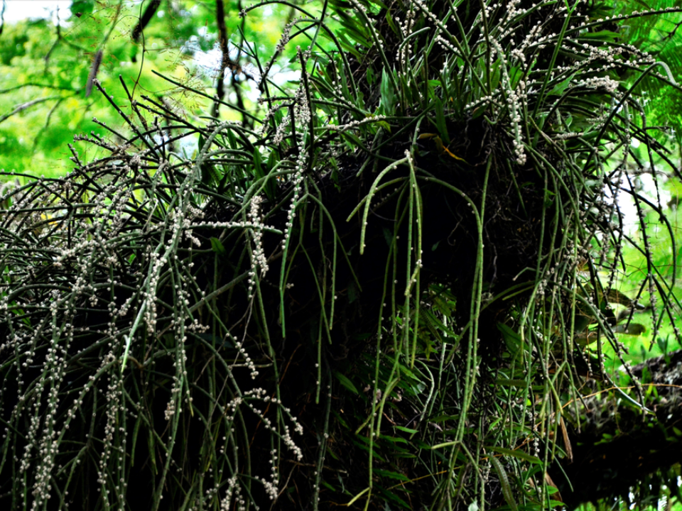 The plant’s ability to store water in its fleshy stems allows it to survive in conditions where rainfall is infrequent. Rhipsalis is an important part of its ecosystem, providing shelter to insects and small birds. Its green, spiny appearance makes it a distinctive plant in the rainforest canopy, where it coexists with its host tree.