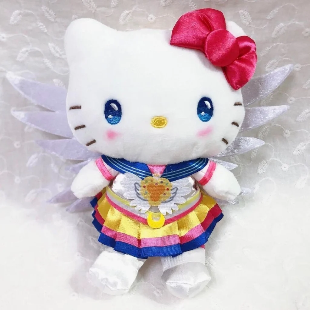 A collaboration between two iconic franchises, Hello Kitty and Sailor Moon, brought this adorable plushie to life. Hello Kitty wears Sailor Moon’s signature sailor suit, complete with the ribbon and tiara, making it an endearing crossover. This plushie blends the charm of Hello Kitty with the magical appeal of Sailor Moon, creating a must-have for fans of both. The plushie often comes in a compact size, perfect for display or travel.
