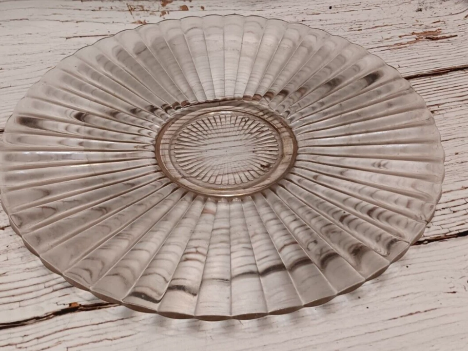 Old Café glass is a charming pattern that invokes nostalgia for the 1930s and 1940s, when it was commonly used in cafes and restaurants. Featuring a series of simple lines and geometric designs, it has a distinct Art Deco feel. Old Café was typically produced in clear, green, or pink glass and was used for serving everyday meals. Its clean lines and minimalistic design made it practical and functional for busy restaurant settings.