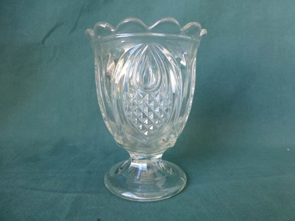 The Pineapple and Fan pattern is a standout Depression glass design that features intricate fan shapes and pineapple motifs. This pattern often comes in a clear or pale amber hue, and was popular for its elegance and craftsmanship. The fan shape creates a beautiful texture across the glass surface, while the pineapple symbolized hospitality and good fortune, making it a fitting design for formal and informal settings alike. This design was produced by multiple companies, with one of the most notable being the Jeannette Glass Company.