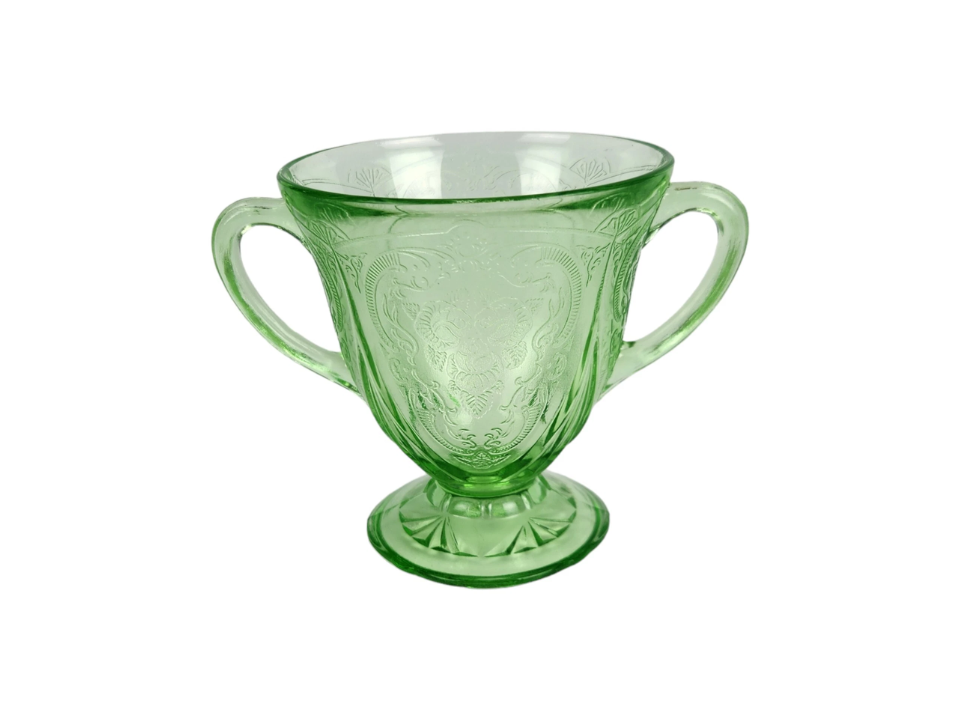 Green Depression glass is among the most popular colors of all Depression-era glassware, and the Green Pattern is a favorite among collectors. Featuring a variety of geometric and floral designs, these pieces were produced by multiple glass manufacturers, including Hazel Atlas and Jeannette Glass. The rich green hue gives the glass a timeless elegance, making it a staple in many collectors’ cabinets.