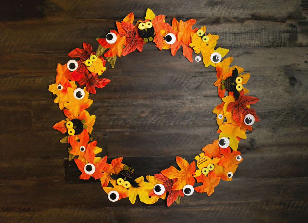 When it’s time for Halloween, you can take this wreath a step further by incorporating spooky accents like black lace, small skulls, or even mini bat figurines. Another fun idea is to attach a few mini witch hats to the wreath for a playful touch. If you like, you could also add some glowing lights around the wreath to make it stand out at night. This wreath is a versatile decoration that looks great during the day and can easily transition to a spooky Halloween accent when the sun goes down.