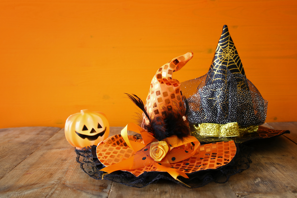 Witch hats are an easy and fun decoration that can tie together both harvest and Halloween themes. To create a versatile display, start by placing a trio of large witch hats at varying heights around your porch. You can use real hats or create your own with black fabric and stiff cardboard. For a harvest feel, adorn the witch hats with faux autumn leaves, acorns, or small pumpkins. Hang them from the ceiling, or if you prefer a simpler approach, place them on the ground near your front door or porch steps.