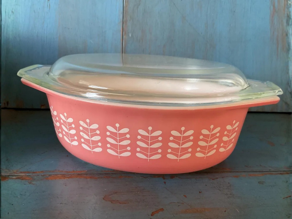 Few pink Pyrex pieces have the same mix of rarity and visual pull. Because it is scarce, even a single casserole can become the main piece in a group. Buyers usually look for full gloss, minimal fading, and an original lid whenever possible. This is one of the lines that serious Pyrex collectors talk about for good reason.