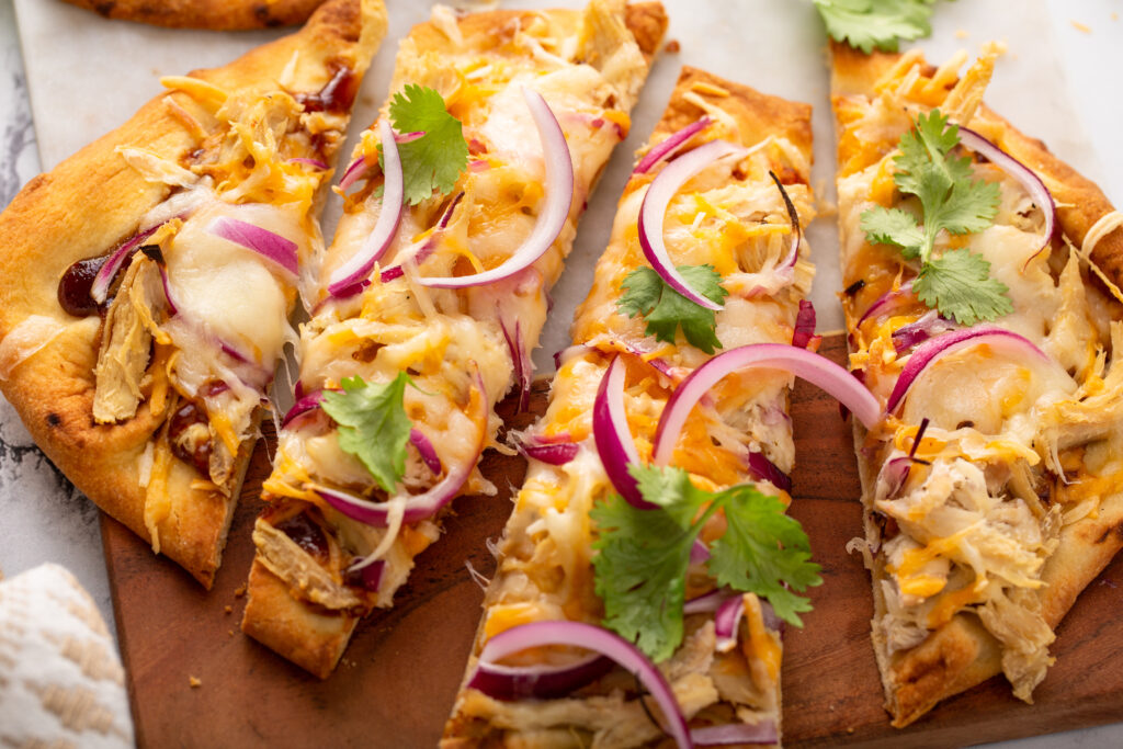 These flatbreads come together fast and still feel fun enough for a casual family dinner. The barbecue sauce gives the chicken a smoky sweet taste, while melted cheese and red onion make each bite feel hearty. A little cilantro on top gives it a fresh finish, though it is still good without it.