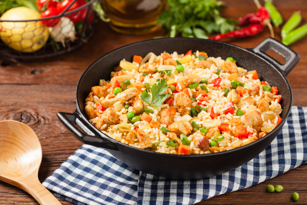 This fried rice is a smart way to use leftover rice and a handful of vegetables. Rotisserie chicken gives it savory flavor without extra cooking time. It is also easy to adjust, so you can keep it mild or add chili sauce at the end.