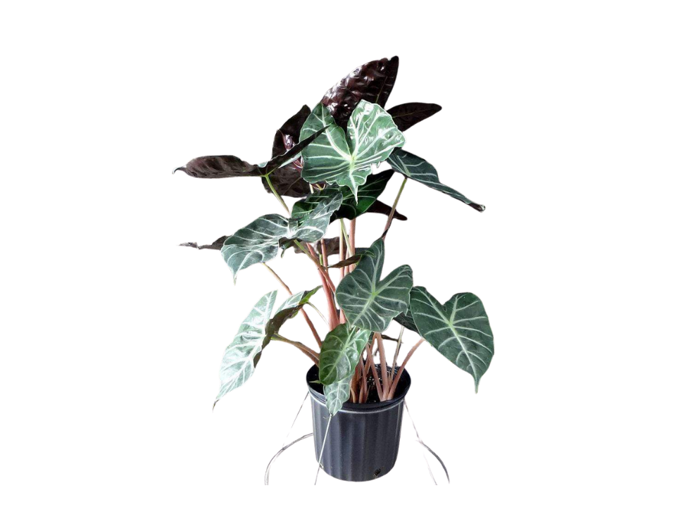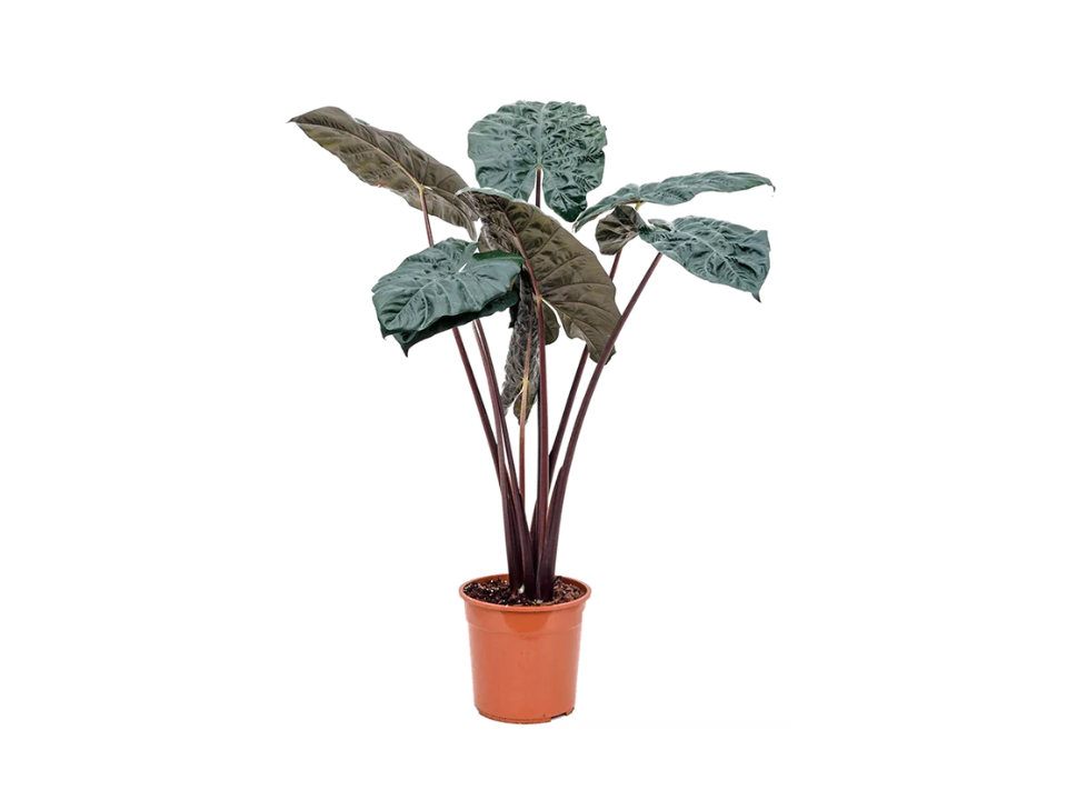 The Alocasia ‘Ebony’ is a stunning variety with dark, nearly black leaves that add a mysterious, elegant vibe to any space. The large, glossy leaves have a deep purple hue that becomes more pronounced in lower light, giving the plant an almost ethereal quality. This variety is perfect for those who enjoy a plant that has a unique, striking appearance. The ‘Ebony’ prefers bright, indirect light and should be kept in a warm, humid environment to thrive.