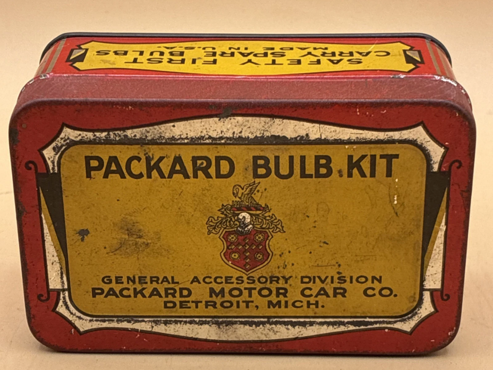 Collectors value this tin for its strong connection to automotive history, particularly with a luxury brand like Packard. The condition of the tin, with particular attention to the preservation of the brand logo and colors, determines its market value.