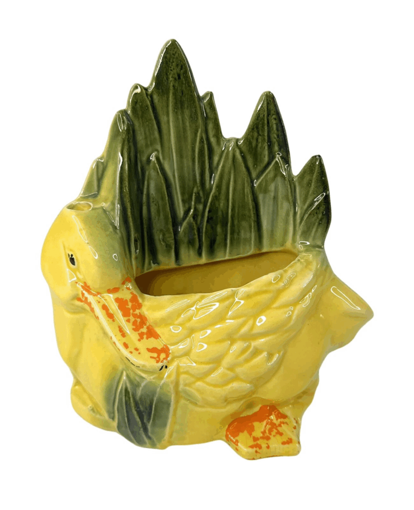 The planter’s glossy finish and vibrant colors reflect the post-war optimism and the era’s fascination with nature. Its compact size makes it suitable for small spaces, allowing it to be a charming addition to any collection. Over the decades, McCoy pottery has become synonymous with quality and artistic expression, and this piece is a testament to that legacy. For enthusiasts of vintage ceramics, the Duck in the Reeds planter remains a sought-after item. Its enduring popularity underscores the timeless appeal of mid-century American pottery.